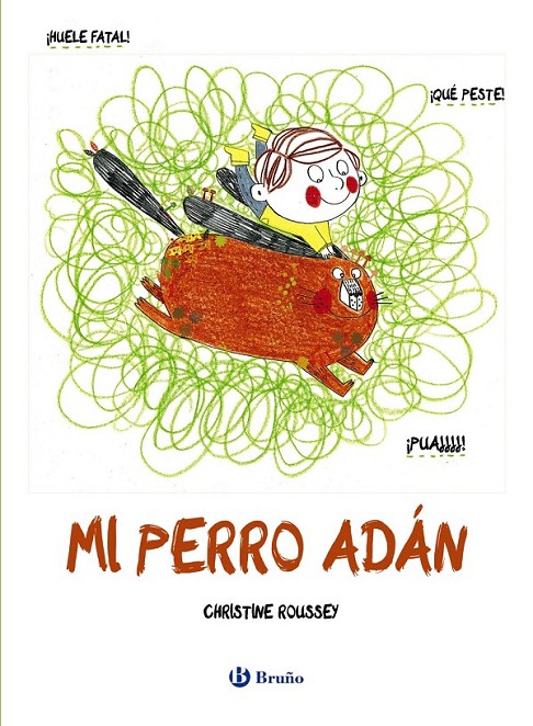 " Mi perro Adán es muy simpático, buenísimo jugando al pillapilla... ¡y el fútbol se le da genial! El problema es que Adán huele muy mal. Le apestan las orejas, el lomo, las patas, la cola, la barriga, el morro... ¡Y atrae a las moscas! Total, que mi perro huele fatal (aunque yo lo quiero igual) " .