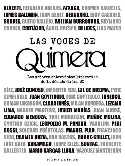 Desde su nacimiento en noviembre de 1980, la revista Quimera ha sido un referente en el mundo literario en lengua española y, mes tras mes, sigue en la vanguardia de la crítica literaria. En sus páginas han tomado la palabra los más destacados escritores y pensadores en entrevistas donde no solo se han adentrado en su obra sino también en su lado más humano.