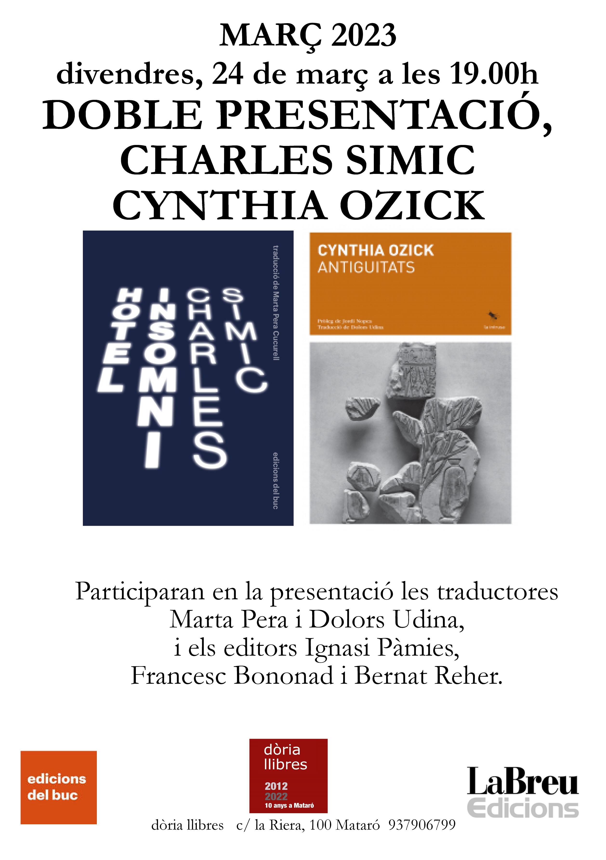 de Charles Simic i Cynthia Ozick amb Marta Pera, Dolors Udina, Ignasi Pàmies, Francesc Bononad i Bernat Reher