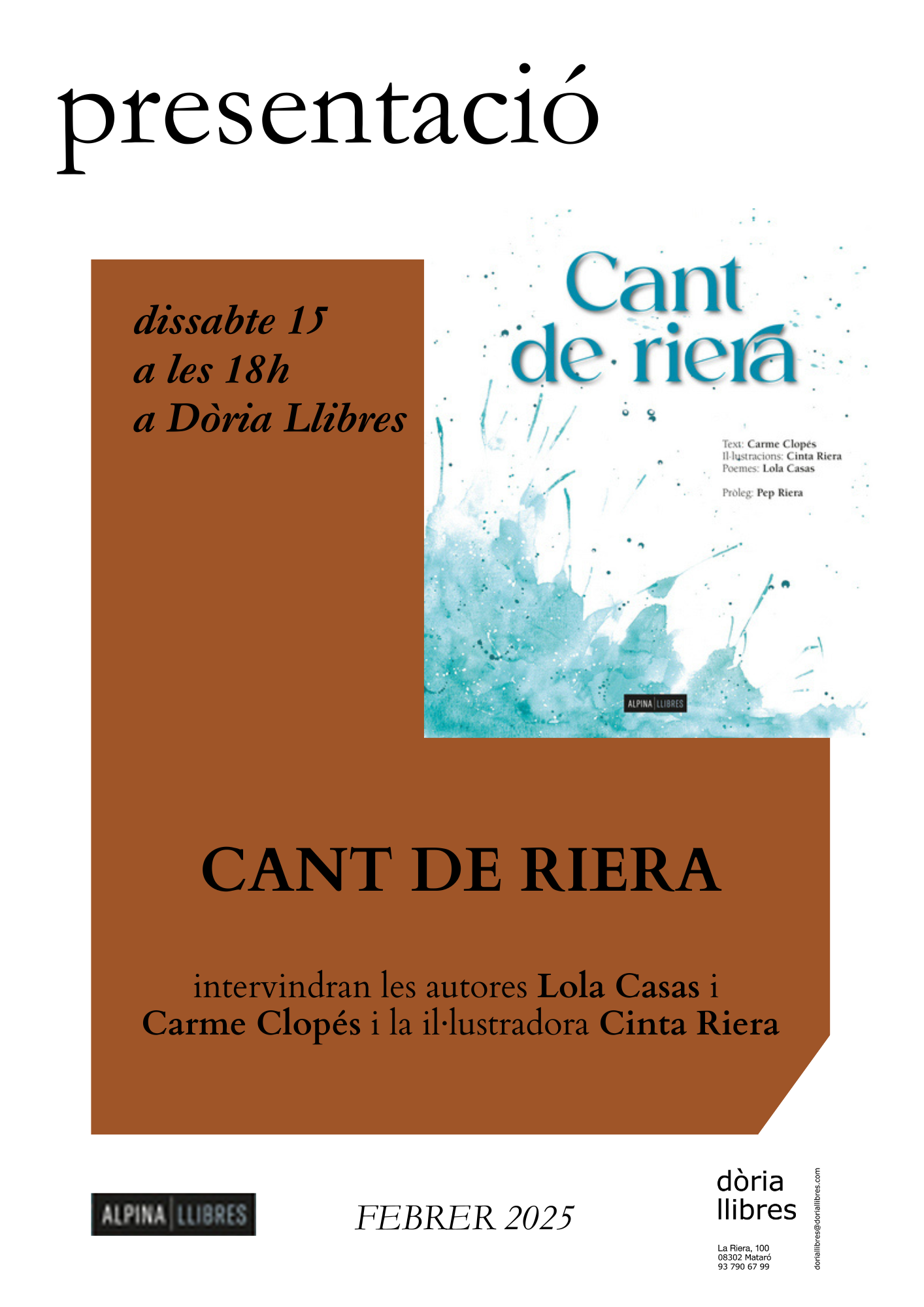 • 15/2/2025 18:00 h DÒRIA LLIBRES, MATARÓ