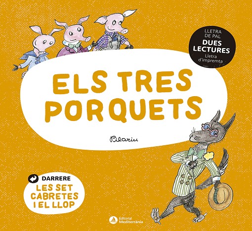 Una col·lecció capicua perquè els més petits comencin a llegir de la mà d’una de les artistes més estimades del país, Pilarín Bayés. Per una banda Els tres porquets i si gires el llibre... Les set cabretes! Amb lletra de pal i lletra lligada per seguir l’evolució lectora dels joves lectors.