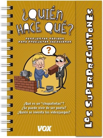 Todos empezamos a temblar cuando un Superpreguntón nos mira directamente a los ojos y abre la boca para decir ¿POR QUÉ? ¿Aún existen los cowboys? ¿Por qué los mecánicos llevan mono azul? ¿Hacer tareas domésticas es trabajar? ¿Qué es un " chupatintas " ? ¿Se puede vivir de ser poeta? ¿Qué hace un zahorí? ¿Quién se inventa los videojuegos? ¿Es posible un diseñador de sueños?