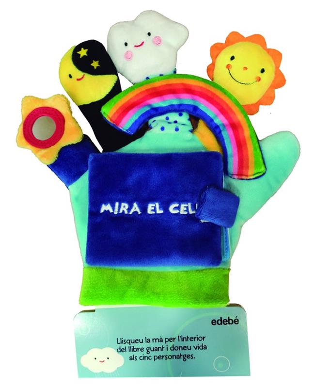 Llibre guant de roba. Cada dit és un titella relacionat amb el cel: l''arc de Sant Martí, el sol, el núvol, la lluna i la estrella. Igual que els altres llibres guant de la col·lecció, les il·lustracions són de colors intensos i van acompanyades d''un text breu.