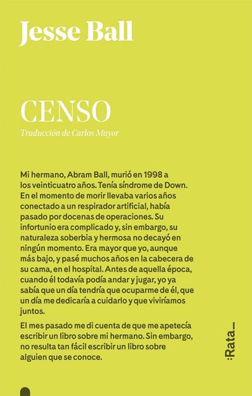 «Censo es un testamento vital sobre el amor altruista; un salmo a los milagros cotidianos; y una misteriosa y envolvente metáfora. Tan amable, que duele», escribe el escritor David Mitchell. Cuando el padre de un joven con síndrome de Down, viudo, recibe la noticia de que le quedan pocos meses de vi...