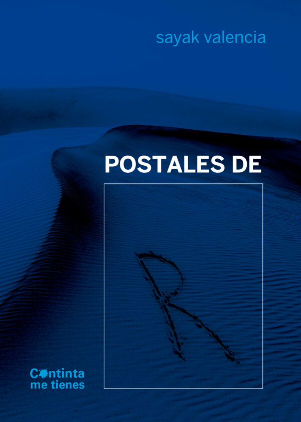 EL DESIERTO, LOS NOMBRES DEL EXILIO, LA MÚSICA DEL DAÑO O LA MEMORIA DE LOS HUESOS SON ALGUNOS DE LOS PAISAJES POR LOS QUE LA POETA, FILÓSOFA Y ENSAYISTA SAYAK VALENCIA Y SUS POSTALES DE R TRANSITAN Y NOS INVITAN A VIAJAR A TRAVÉS DE ELLOS. LA ENSAYISTA, AUTORA DEL ACLAMADO CAPITALISMO GORE, SORPRENDE CON SU POESÍA MÁS ÍNTIMA Y A LA VEZ MÁS ABIERTA AL MUNDO.