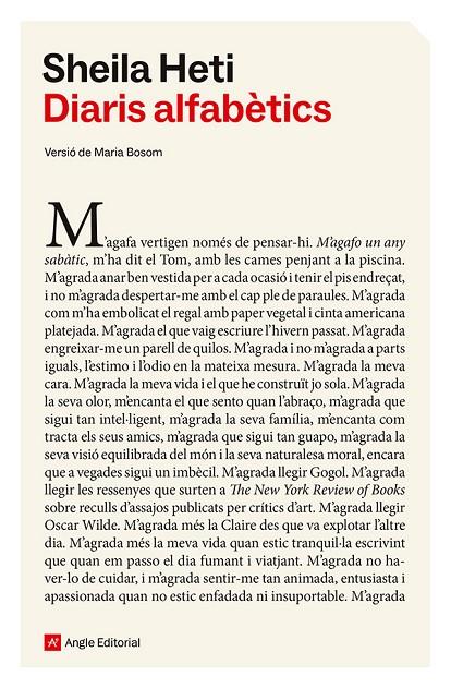 UN LLIBRE RADICALMENT ÚNIC. Sheila Heti va seleccionar unes 500.000 paraules dels seus diaris personals escrits al llarg d'una dècada, va posar totes les frases en un full de càlcul i les va ordenar alfabèticament. Va retallar i retallar fins a deixar-hi unes 60.000 paraules. Són els seus _Diaris alfabètics_, que reorganitzen des d'aquesta nova lògica els fets de la seva quotidianitat: els amics, els amors, els anhels, les reflexions sobre l'art i l'escriptura... Com es relata una vida? Com s'ordena? A l'estil de Perec i de Queneau, Heti fa miques la narrativa convencional i, a canvi, ens ofereix una allau incessant d'esclats brillants, on l'atzar convida al vagareig de la consciència tant de l'autora com del lector. Seguint amb aquest joc, la traducció també s'ha reordenat alfabèticament, de manera que aquests _Diaris alfabètics _SÓN ELS MATEIXOS QUE L'ORIGINAL I ALHORA RADICALMENT ÚNICS. VERSIÓ DE MARIA BOSOM * «Crec que _Diaris alfabètics _és un clàssic del futur. Una gran idea executada magistralment.» - Zadie Smith * «Sheila Heti ha obert nous camins.» - Rachel Cusk
